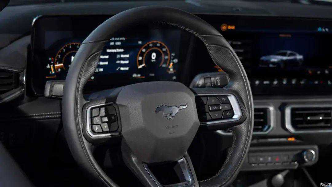 方向盘采用了平底式设计,这样的造型相比现款而言要运动许多。12.4英寸仪表搭配稍稍偏向主驾侧的13.2英寸触摸屏,车联系统是目前福特品牌海外市场最主流的SYNC4系统,目前还不清楚未来的入华车型是否会替换成本地化的SYNC+系统。