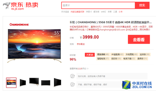 这款长虹曲面屏电视有着4000R黄金曲率设计,符合人体工程学设计,让观众体验到身临其境的现场感。自动景深优化功能,可以针对屏幕的不同区域进行不同的对比度增强,可以让图像的层次感更加丰富。HDR技术的加入,可以让画面明处和暗处的细节表现更好。