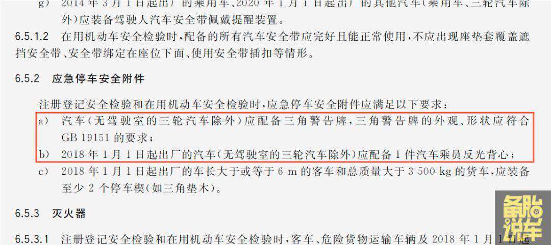 第6个:年检的时候,三角牌、反光背心、灭火器到底要不要?