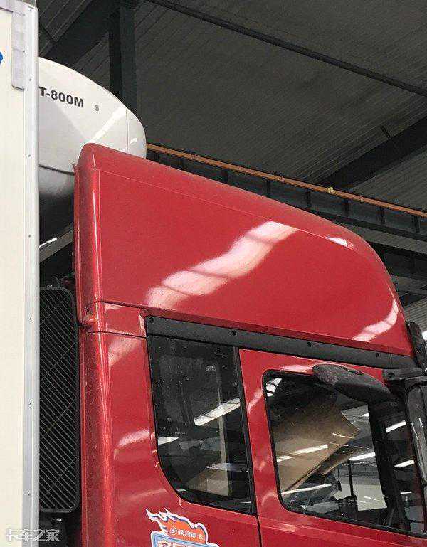 值得讨论的是目前8×4等冷藏单车中常见的高顶双卧驾驶室与独立制冷机组的矛盾。因为长途工况需要,越来越多的冷藏车需求高顶双卧铺的配置,而冷藏车最常用的顶置式独立制冷机组体积较大,会与驾驶室产生干涉,平顶驾驶室可以与独立机组做到相安无事,但选择高顶时只能选择妥协方案,最常见的无非改货厢、改驾驶室。