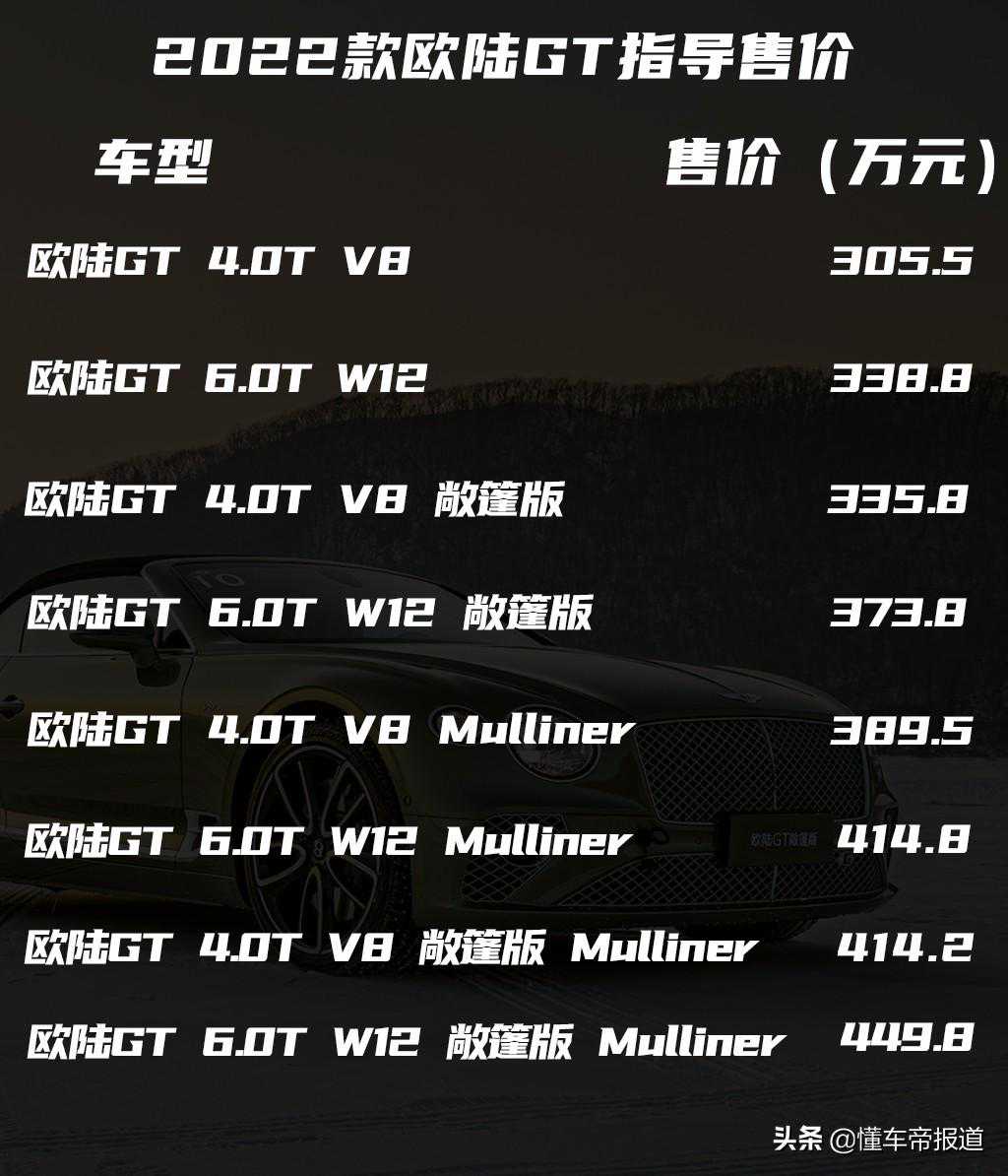 2022款欧陆GT售价
