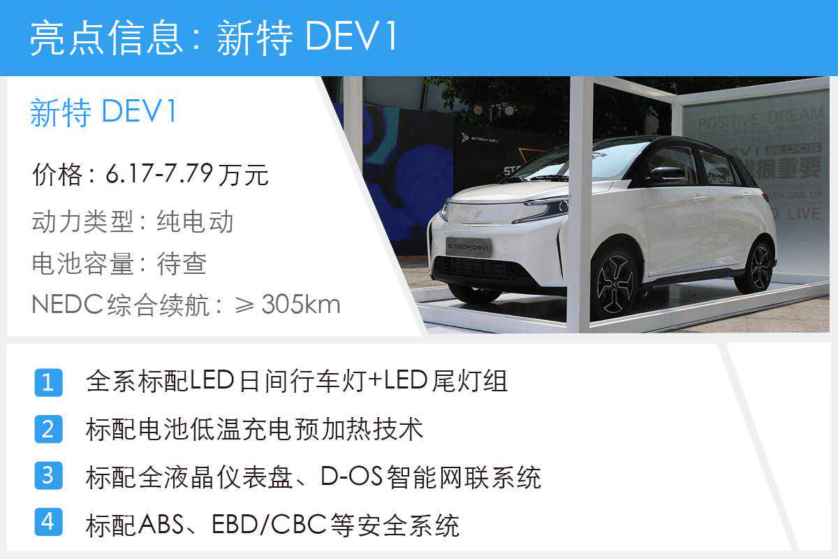 新特DEV1于成都车展前夕上市,其6.17万的起售价搅得不少人辗转难眠,这一价格无论是对打算购车的消费者还是同级竞争对手来说,都是一个意料之外的结果。NEDC综合续航里程305km的水平,前卫的外观以及丰富的科技配置让新特DEV1一出世就展现出一副初生牛犊不怕虎的态势。令不少消费者开始有了购车的打算,所以今天编者就为您对比一下前期发售的两款车型之间的配置差异,帮您选到最具性价比的车型。