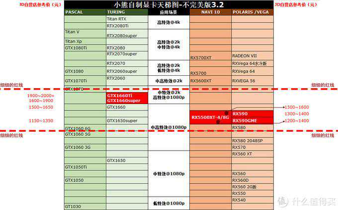 1000~1499档位的N卡只能推荐GTX1650Super;A卡方面,祖传北极星推荐吗?好纠结,其实北极星的性能尚可,缺点是功耗高。但现在主要问题是北极星的矿卡盛行,还有那些店保的洗白矿卡,在低价面前很难做到不去冒险。小熊稳妥起见,A卡还是建议选择4G版的RX5500XT,不过目前只有华擎和撼讯两款产品。