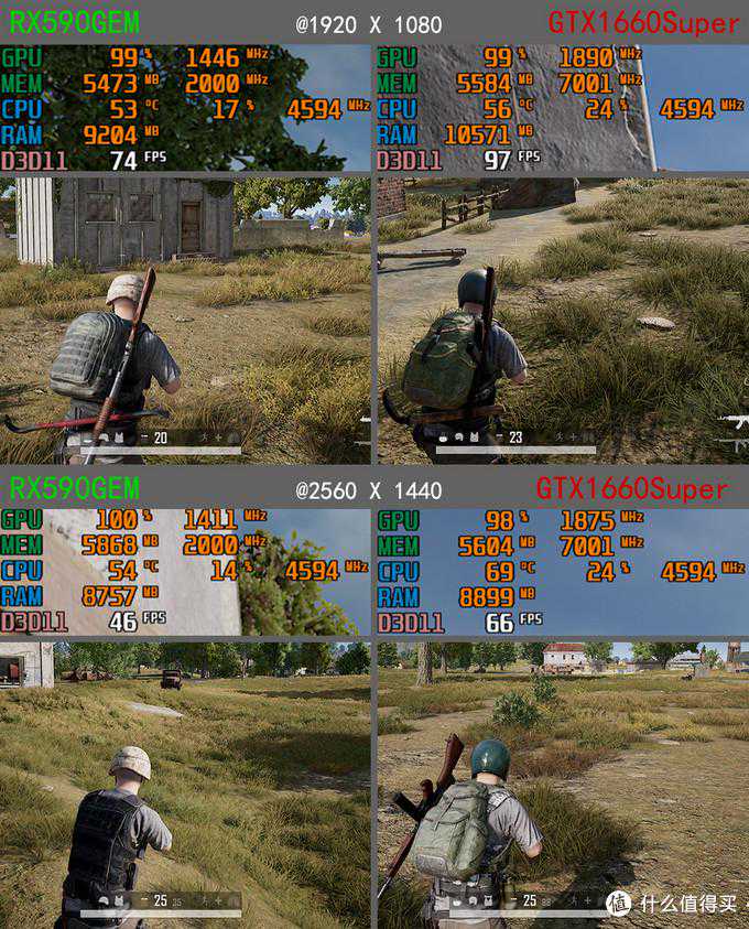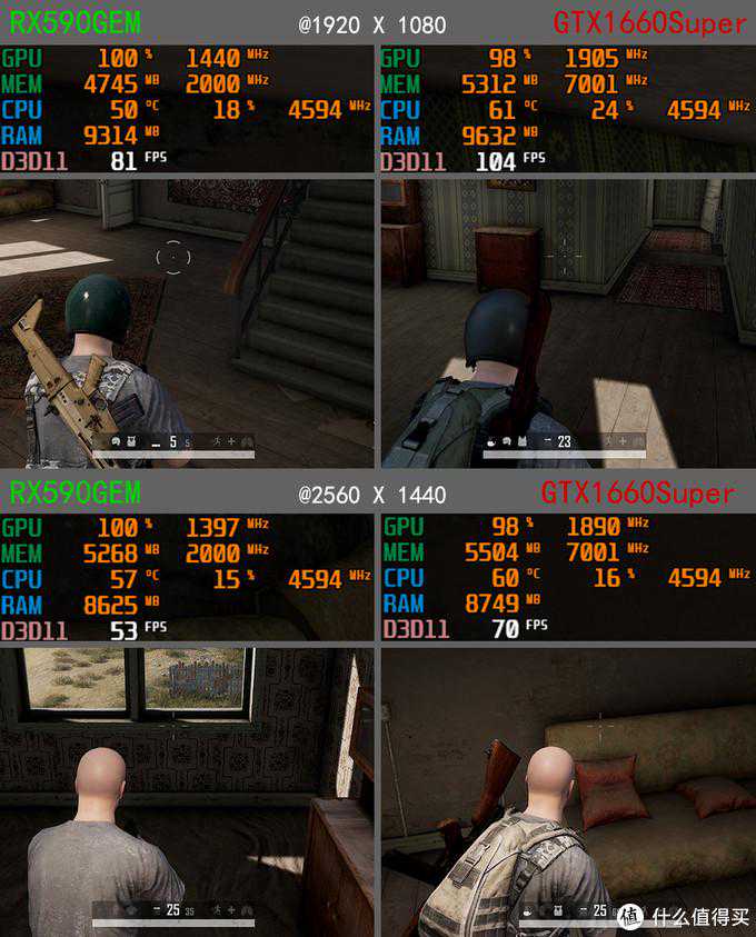 吃鸡也是N卡比较占优势,GTX1660Super大概领先RX590GME领先20fps左右,稍稍优化即可以在2k分辨率下流畅游戏了。