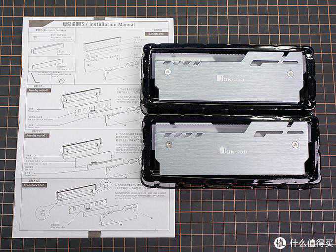 ▼单面内存无颗粒面用黑色泡棉垫,有无颗粒面用硅胶导热垫,如果是矮款内存,可以使用装配件中的增高块完成安装。