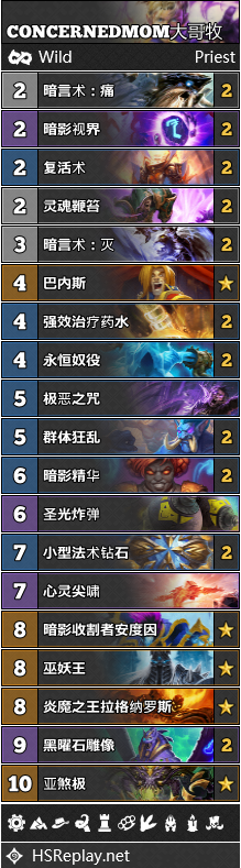 不出所料,大哥牧仍然是狂野之中最热门的牧师卡组。实际上,在平衡补丁之后,这一形态已经从偶数萨手中夺走了狂野热度第一的宝座。不过,我们还是有一些好消息要告诉鄙弃这一卡组的玩家们:大哥牧实际上有些虚张声势。他固然还是狂野中的一股生力军,但是如今他根本就挤不进T1,甚至在高分段只能勉强保住T2。一部分的原因可以归结为天敌海君贼的增多,以及奥秘法的复苏。不过,大哥牧在对阵术士卡组时还是优势明显,因此在可预见的未来,他都能在狂野环境中保有一席之地。
