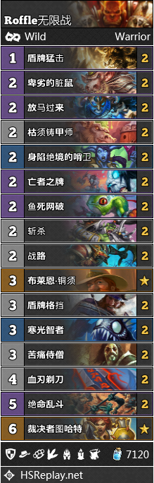控制战如今颇为罕见。这一卡组放弃了开局白送的强化英雄技能,换来了像战路,亡者之牌和脏鼠这样的偶数费用卡。这一卡组的思路是试图利用两张亡者之牌实现无限牌库,同时利用各种移除手段和寒光智者将对手活活耗死。