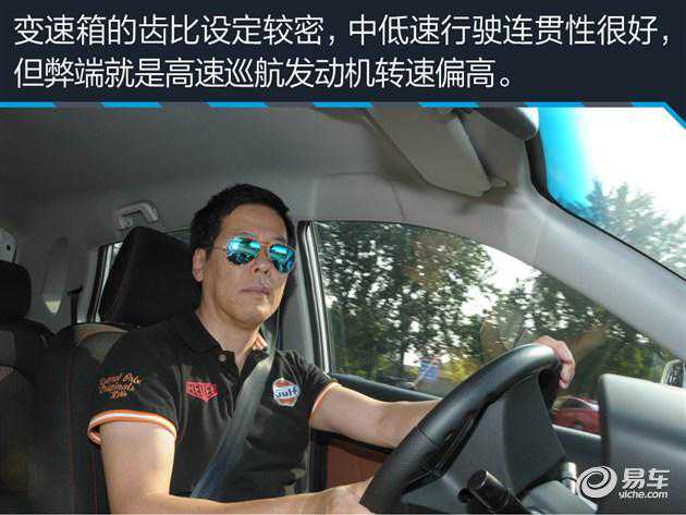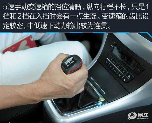 这台五速手动变速箱的挡位比较清晰,纵向的行程不长,操作起来比较省力,挂入1挡和2挡时还是会感受到一点生涩,这也许是新车未磨合的原因。变速箱的齿比设定较密,中低时速下各挡位间的衔接都很好,动力输出较为连贯,但在中高速状态下,发动机的转速会偏高,在100km/h时速下转速已经超过3000转。