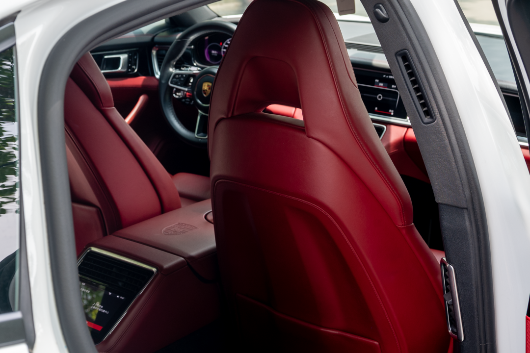 今天我路试的这辆2017款Panamera,也是家用车属性。它是去年我们的一位资深客户给夫人淘的带娃车,真就只负责带娃。再往前其实也是家用车,当时里程是3.8万公里,虽然车上选配不算多,但是成色好,常规行情价,而且配色又是最经典的白外红内,最终打动了客户大哥。