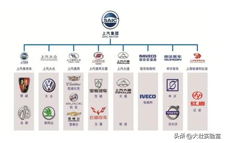 到目前为止,上汽集团旗下已经拥有了包括自主品牌的荣威,名爵,五菱,大通,宝骏,等等整车自主品牌,更是合资了包括上汽大众,上汽奥迪,斯柯达,别克,雪佛兰,凯迪拉克,依维柯等等众多的知名的汽车品牌。