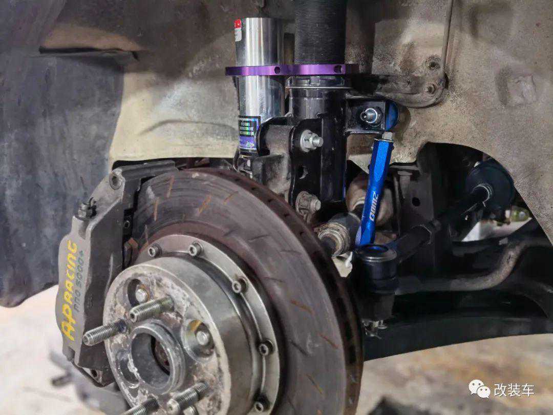 "首先是行走及操控方面,换上了D22Way绞牙避震、雅泛迪轮毂、AP5000+PRO卡钳+赛用刹车皮、订制前可调鱼眼下摆臂、后可调4连杆,很明显要将这辆车变得战斗起来。"