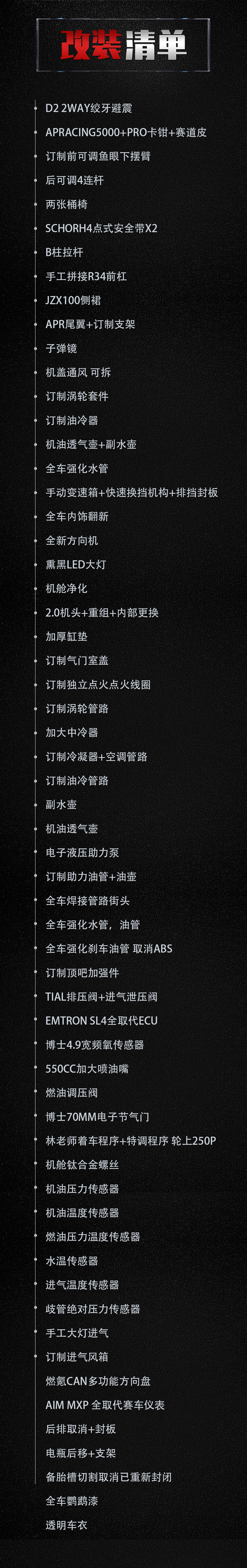 "目前这辆车的改装大概就是这些了,还有很多小细节的改装大家可以留意最后的改装清单。"