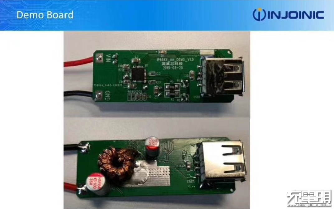 从官方提供的车充DEMO图片可以看出,板端电路设计简单,外围器件极少,该方案可有效降低产品的设计成本和BOM成本,并可应用于小体积充电配件产品。