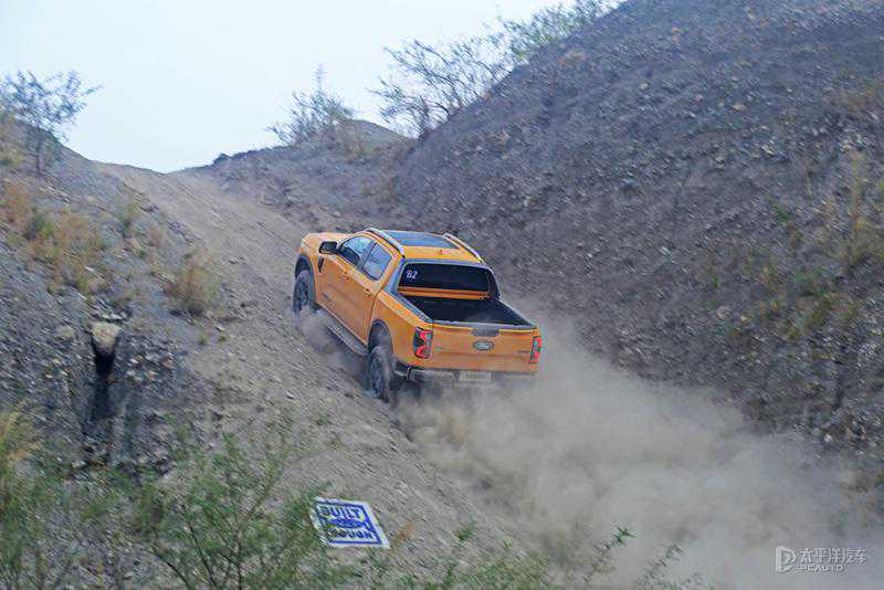 看着前面的车在摇摇晃晃通过炮弹坑,车轮搅起来漫天尘土,伴随着发动机的轰轰声以及闯进座舱的汽油味,我整个人都来了精神。回想起来,已经有三四年的时间没有体验过越野的乐趣了,而且还是一台搭载2.3T汽油机而不是电机的皮卡,更有趣的是,这还是台曾经进口,如今国产的福特皮卡。