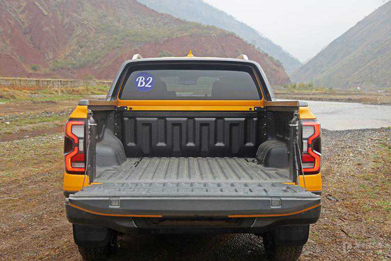 游骑侠Ranger的后斗尺寸非常大,长宽高达到了1458*1584*545mm,两个后轮拱之间可以容纳1200*800mm的欧标标准叉车盘。试驾车型的后斗左右两侧都配有照明灯以及220VV2L的电源接口,并且原装车就带有耐磨涂层。放在皮卡中,这样的后斗配置算是很豪华了。