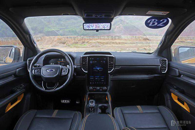 内饰的造型同样彰显着粗犷风格,但是绝对不简陋,很显然游骑侠Ranger并没有把自己定位在工具车上,因此它的内饰整体设计更接近家用SUV的设计,内饰的皮质用料非常讲究,覆盖面积大而且很细腻。12.3英寸数字仪表盘和12.1英寸全液晶触控屏,让游骑侠Ranger的档次提升了不少。
