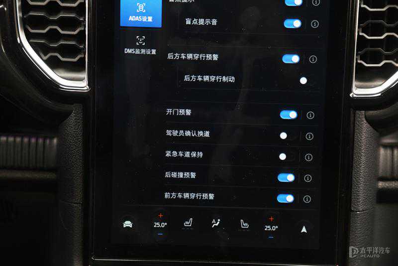 除了前面提过的悬挂差异外,试驾的这台顶配车型还配备了很多智能化功能。Co-Pilot360™系统并不是它的专属,但是这款车配备有DCLC打灯智能辅助变道系统,并且可以后期通过OTA升级得到NGA智能领航驾驶辅助系统,这是这款车的一大吸引力,它将一台皮卡拉入了智能汽车的行列。这套系统可实现基于高精地图的高速NGA,包括高速自动变道、自动超车以及自动上下匝道等。