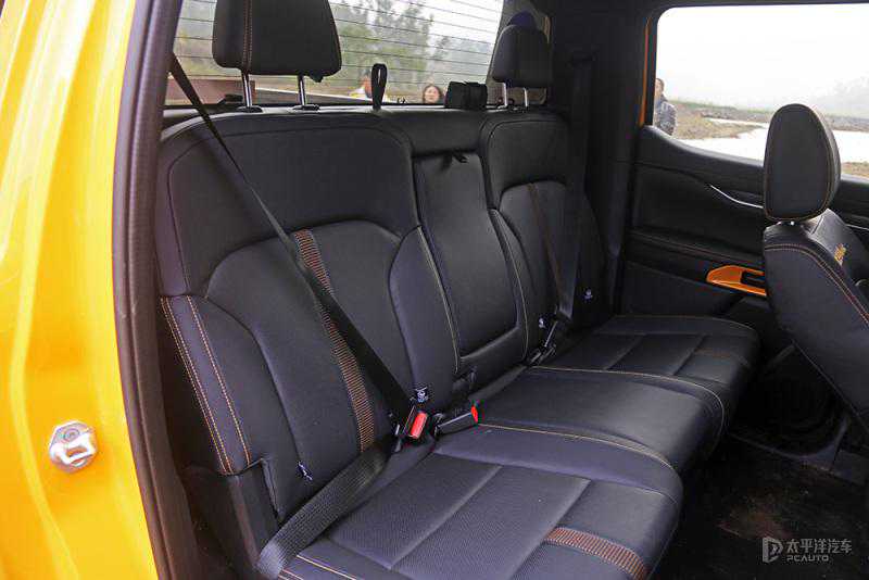 细节上同样能看出游骑侠Ranger的细致和专业。举两个例子,一个是内侧门把手的设计与传统车型不同,好处是在越野路况下车辆侧倾状态下开门时,开门同时手可以拉着车门,保证进出安全。二是它的后排座椅有一个26°倾角设计,皮卡不像SUV,后备箱与座舱是被一个垂直的车体框架完全隔开的,导致很多皮卡后排座椅的靠背很直,长时间乘坐非常难受,但今天长途乘坐游骑侠Ranger的后排,足够舒适。