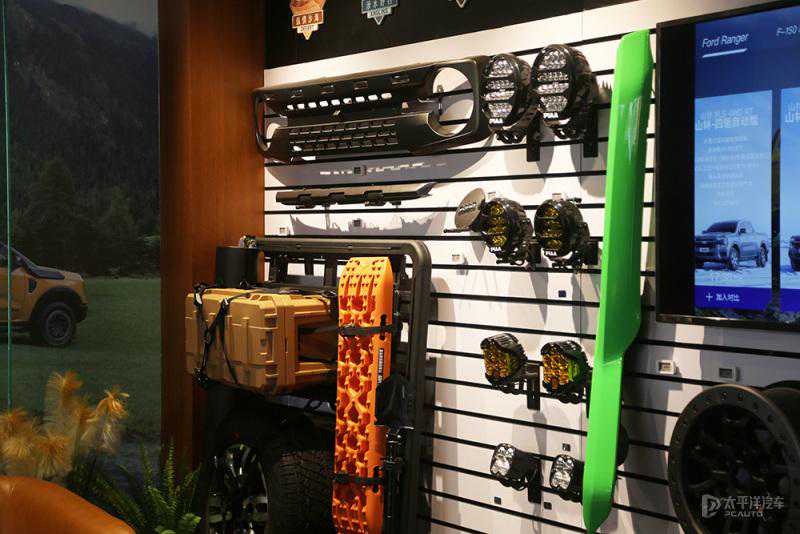 新的纵享空间在销售和售后服务方面针对福特纵横旗下的硬派车型,提供了更具针对性的体验和服务。例如在展车大厅采用大屏幕提供沉浸式的静态体验,以及提供了改装配件区、精品区等等。