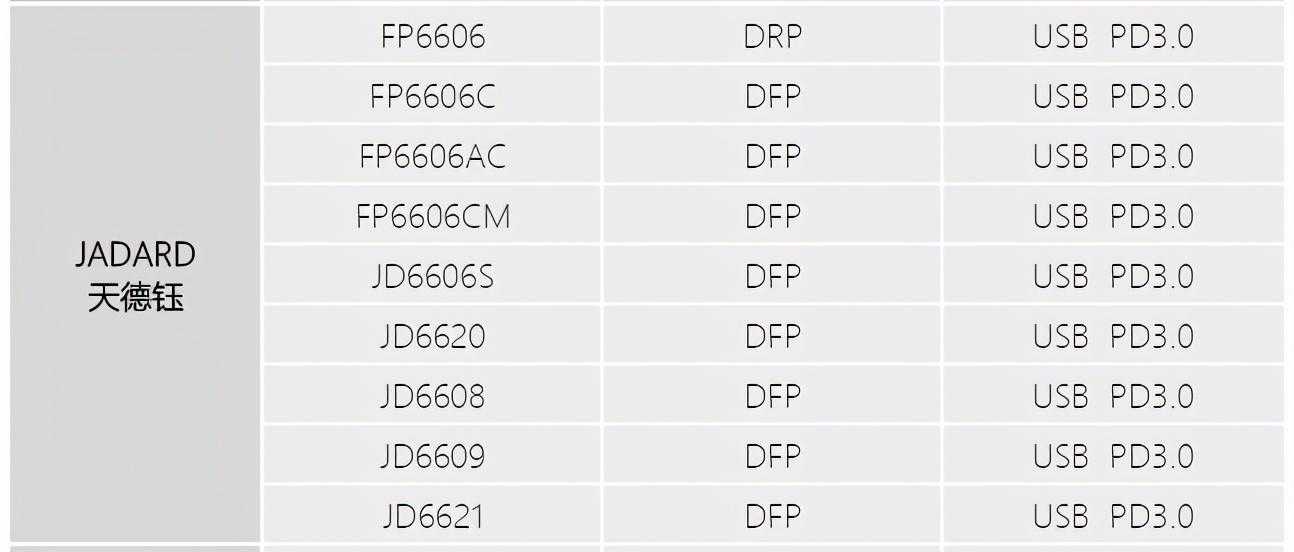 天德钰科技在快充协议芯片已深耕多年,推出了USB-IF协会/PPS认证的快充协议芯片JD6621(TID:3543)和JD6606S(TID:3768),为苹果20WPD快充产品的开发提供兼容性保证。同时,天德钰还拥有符合高通最新协议的芯片,为快充充电器、快充移动电源及快充车充应用提供芯片支持,实现多口不同设计。