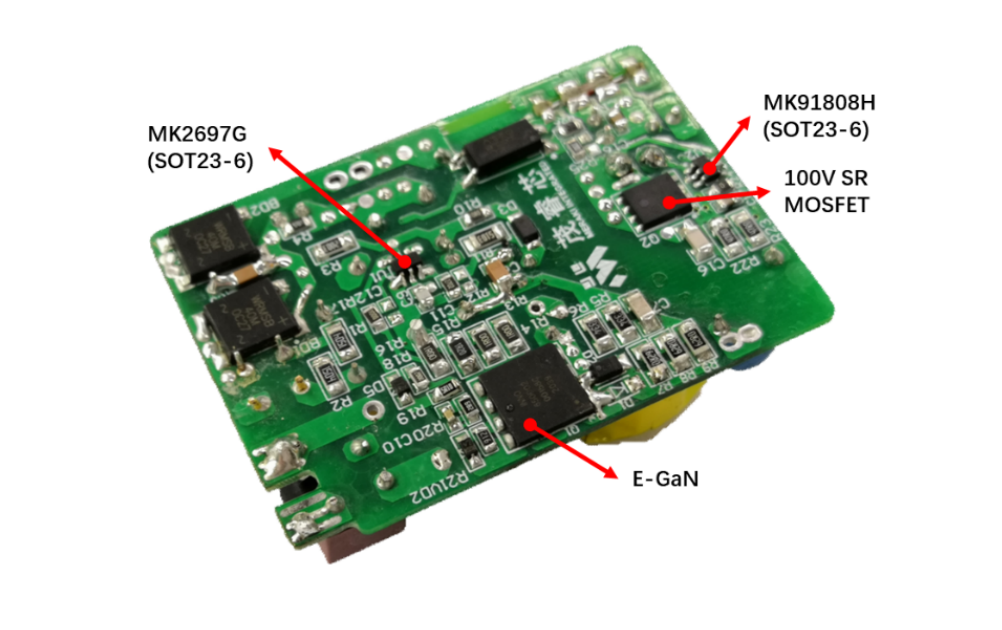 针对时下主流的氮化镓快充市场,茂睿芯推出的GaN驱控制器采用六脚封装刷新业界纪录。基于该芯片开发的高精简低成本65WGaN快充方案,具有小体积、高效率的优势。